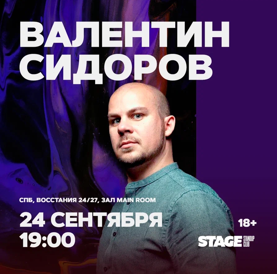 Купить билеты на концерт Валентина Сидорова в Stage StandUp Club города Санкт-Петербурга онлайн возможно на сайте iCity.life.