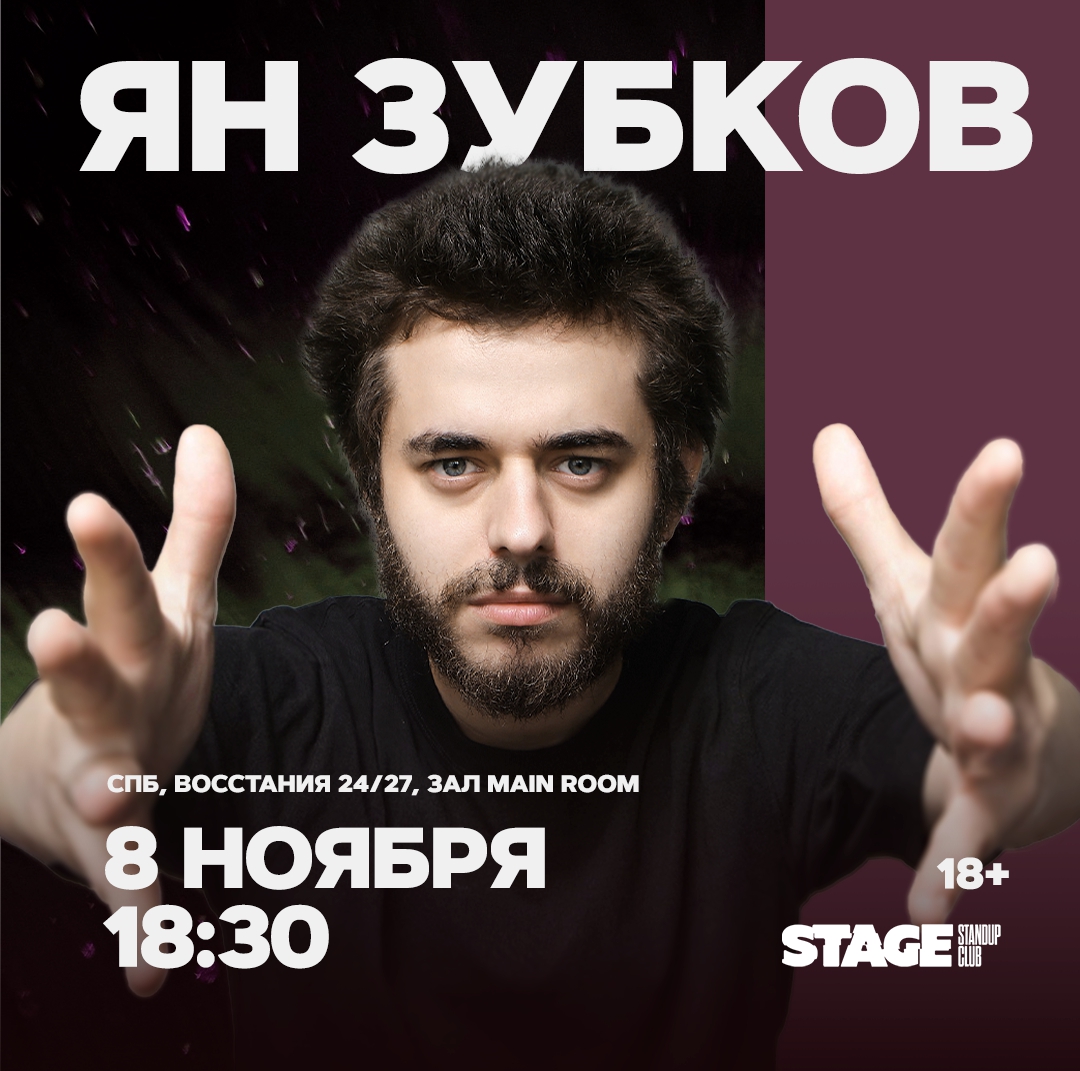 В сезоне 2025 года на сцене Stage StandUp Club города Санкт-Петербурга состоится юмористическое шоу Яна Зубкова. Не пропустите, будет смешно!