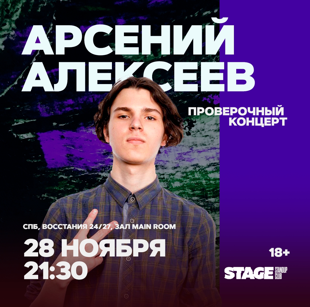 В сезоне 2024 года на сцене Stage StandUp Club города Санкт-Петербурга состоится юмористическое шоу Арсения Алексеева. Не пропустите, будет смешно!