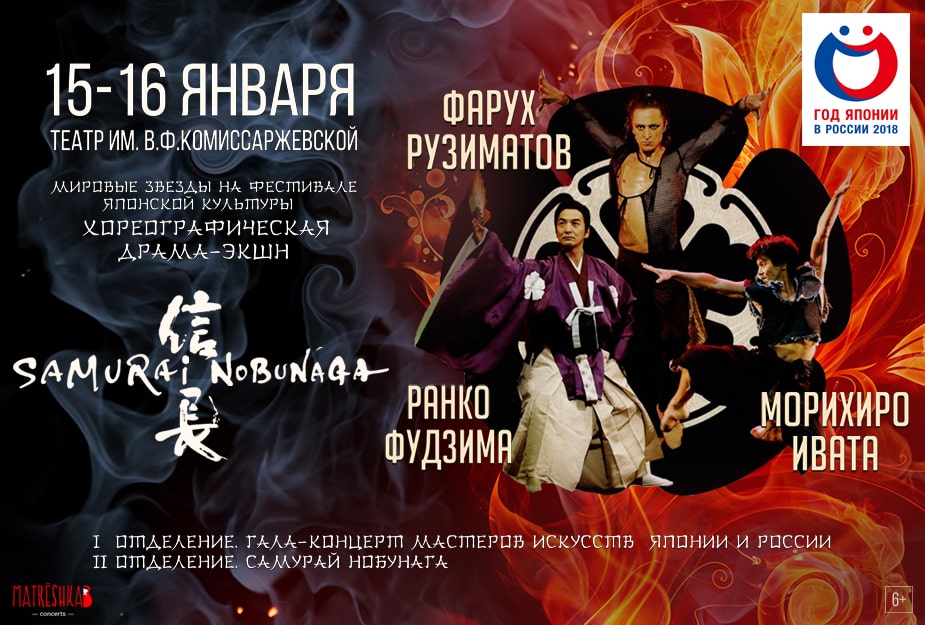 15 и 16 января 2019 года на сцене Санкт-Петербургского академического драматического театра им. В.Ф. Комиссаржевской в рамках Фестиваля японской культуры покажут зрелищную балетную постановку "САМУРАЙ НОБУНАГА".